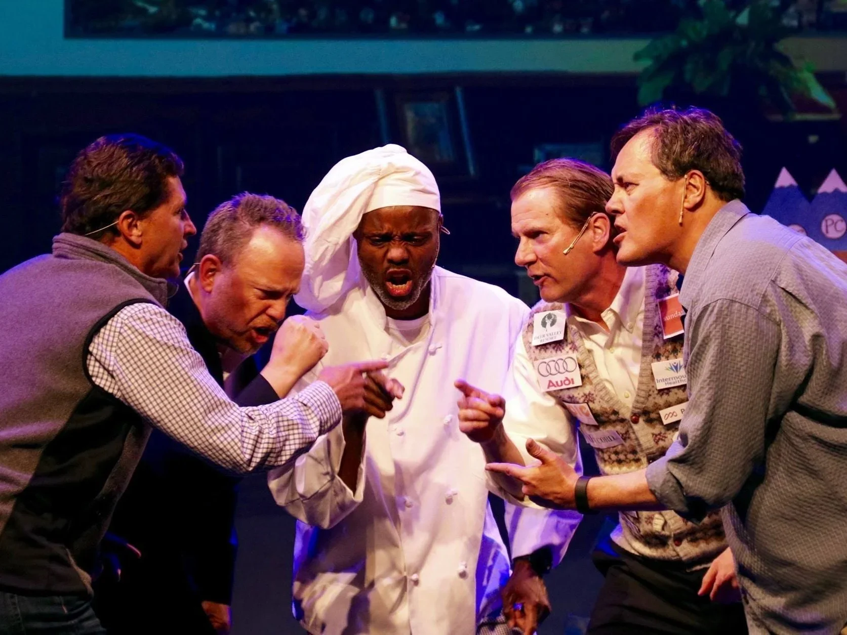 Current Director Mark Conklin found his way to Park City after years of working as a professional actor in New York and Los Angeles. “I got a job doing websites in 1999, and stayed as a consultant with that company. I wasn’t doing anything creatively until someone found out I played drums, then I started playing and singing with a few people, then with The Follies. I hadn’t been on stage for 10 years…it was great fun to be back on the boards making people laugh. 6 or 7 years ago I switched from the band to being on stage. Last year Paul Tan decided to take a step back as Director after many years, and he tapped me because he knew I had a history in it and ‘knew the formula’, so to speak, for the show. He didn’t want to stray too far from it. So I said yes. And it was a fun experience to be the Director and pull things together and watch the process.”